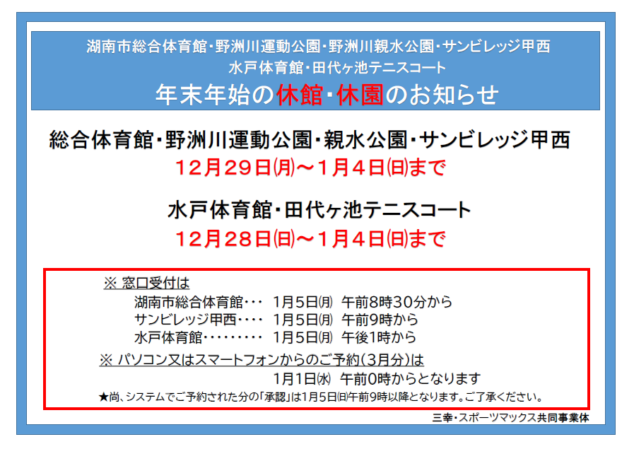 サンビレッジ甲西 照明工事に伴う施設開放のお知らせ